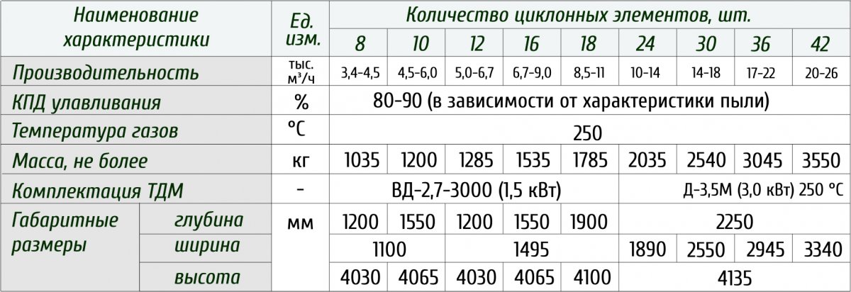 Применяемая система частичного отсоса газов через более эффективную вторую ступень очистки обеспечивает высокую степень улавливания основных циклонов во всех режимах производительности.