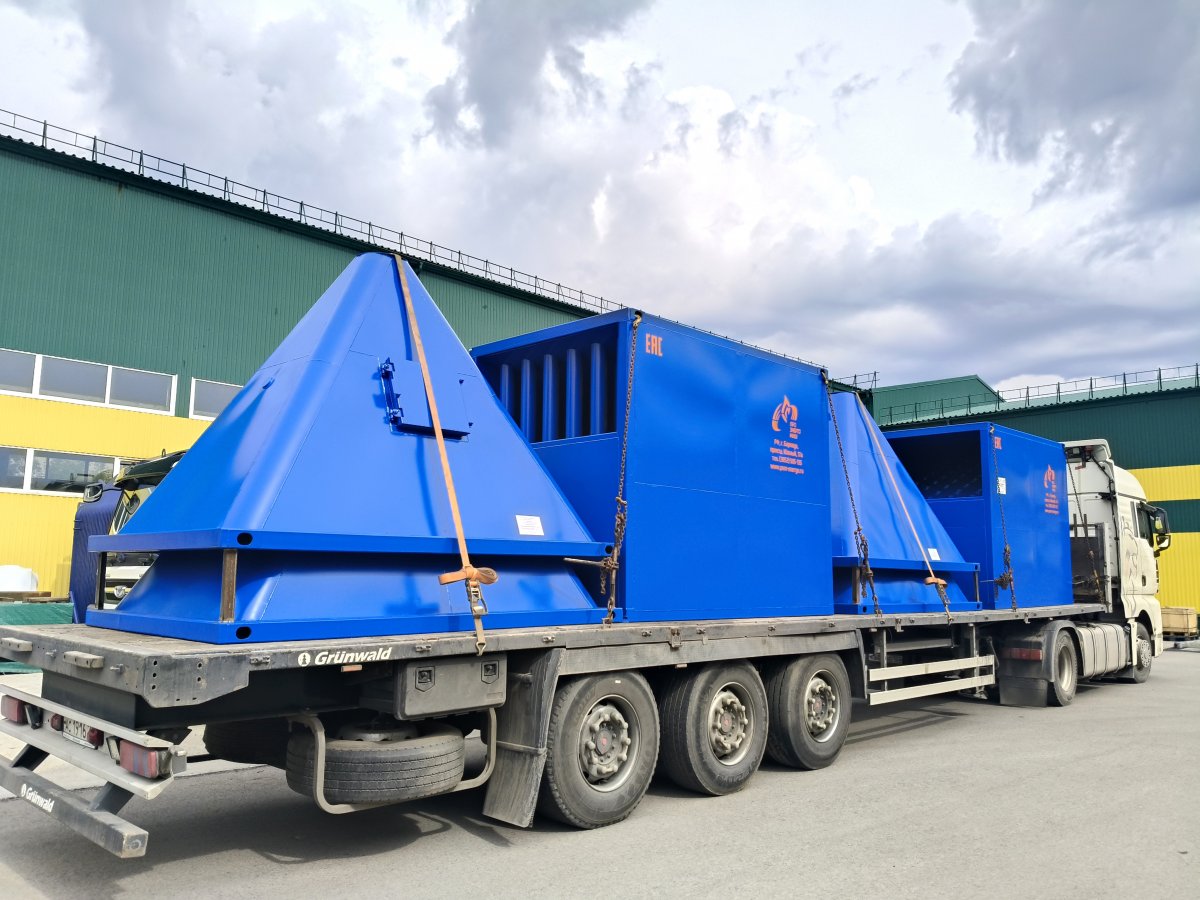 Состоялась отгрузка ещё двух из двенадцати батарейных циклонов БЦф-6х8 СЧ, предназначенных для строящейся теплогенерирующей установки тепловой мощностью 45,36 МВт шахты в г. Ленинск-Кузнецкий Кемеровской области.
